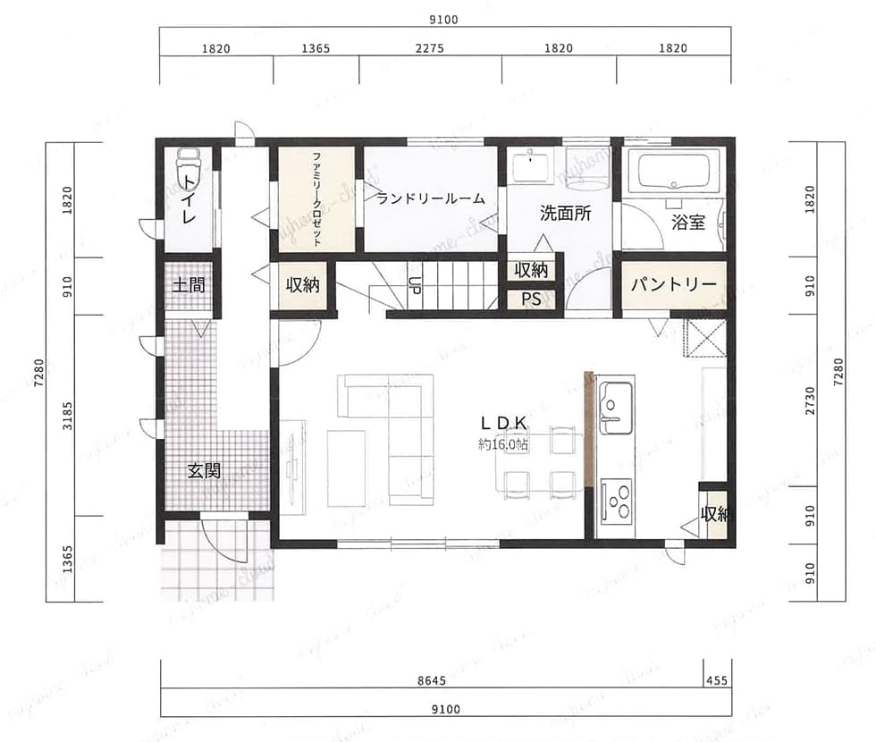 8-5-8区画 参考プラン 平屋